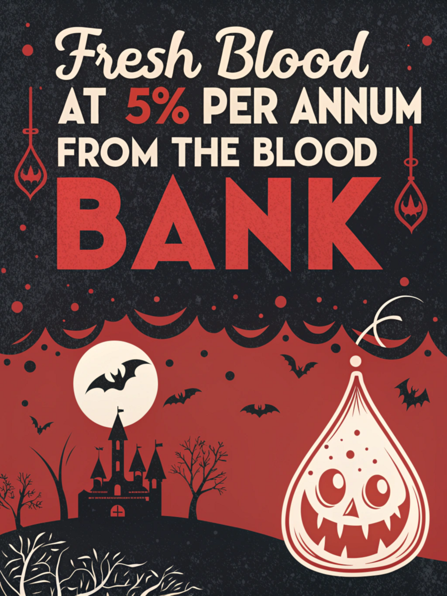 https://www.recraft.ai: design of poster from a blood bank for vampires with text «…»; 3:4