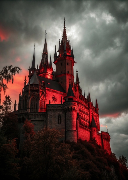 https://www.recraft.ai: blood bank for vampires, interior of the bank, bright lights, red colors, blood storage; 16:9