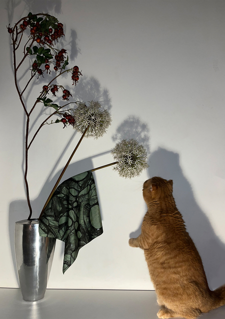 в этом модуле темой моего проекта стало слово «полёт». разобрав ассоциации, возникшие с этим словом, я создала принт, который представляет собой абстрактную текстуру крыла бабочки. данный принт в последствии стал украшением шёлкового платка.