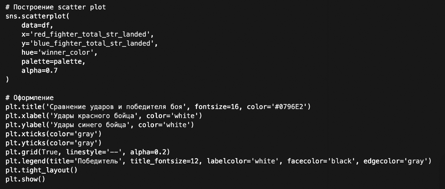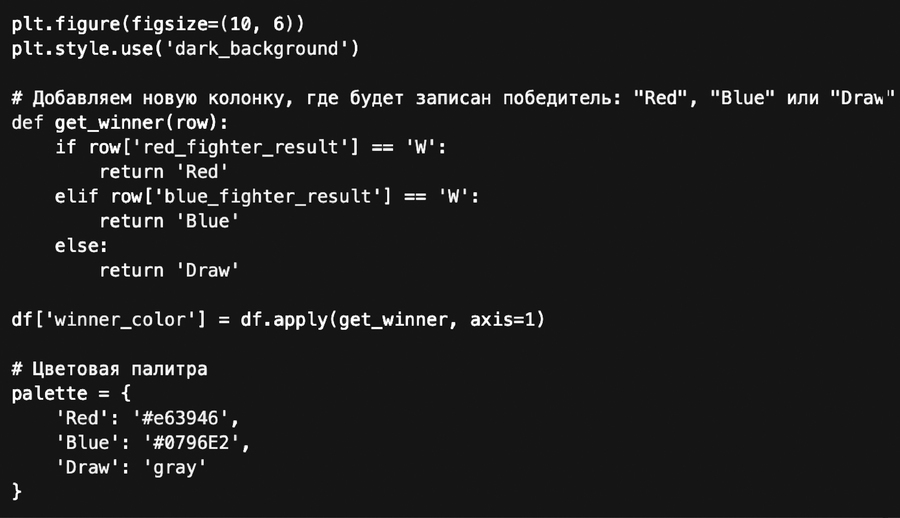 UFC — один из самых динамичных и зрелищных видов спорта. Данные о боях позволяют проследить паттерны побед, доминирующие стили, и сравнить поведение бойцов по весу и возрасту. Кроме того, в этом проекте хотелось не просто визуализировать данные, а сделать это выразительно, визуально эффектно и точно.