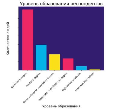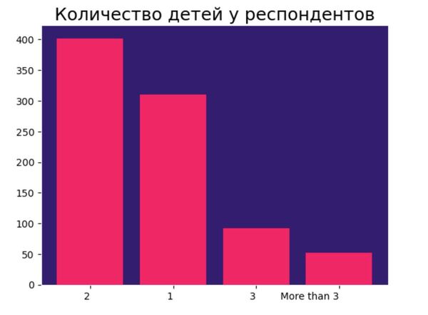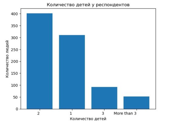 После этого были созданы столбчатые диаграммы для анализа количества детей у респондентов и уровня образования