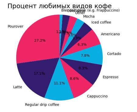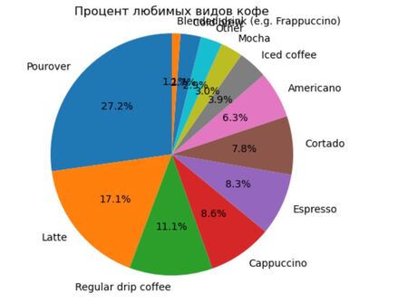 Далее я создала круговые диаграммы для таких данных, как «Процент любимых видов кофе» и «Процент респондентов по полу».