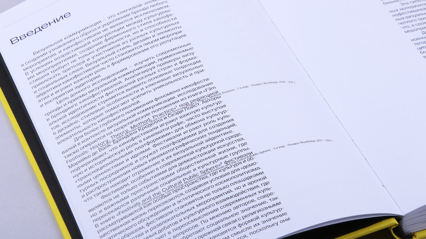 Визуальное исследование посвящено анализу брендинга кинофестивалей через призму их визуальной идентичности. Оно включает изучение ключевых элементов графического дизайна в международных, национальных, тематических и локальных фестивалях. Основное внимание уделено взаимодействию универсальных дизайнерских принципов с уникальными образами, отражающими контекст каждого события.