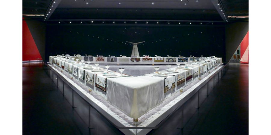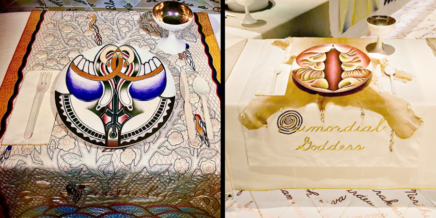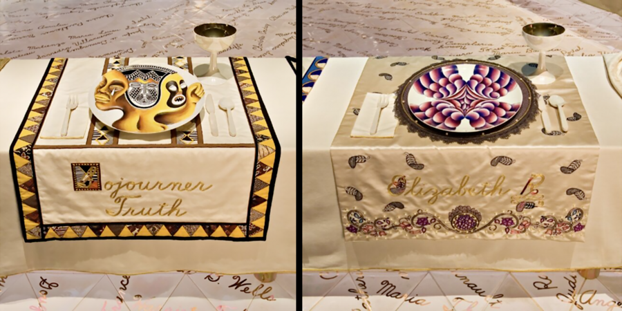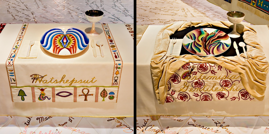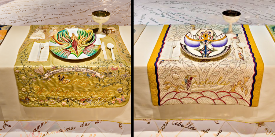 Треугольный стол с тридцатью девятью приборами, каждый из которых посвящен исторической женщине, ассоциировался скорее с языческим ритуалом, чем с традиционным «женским» рукоделием.