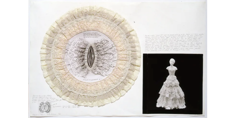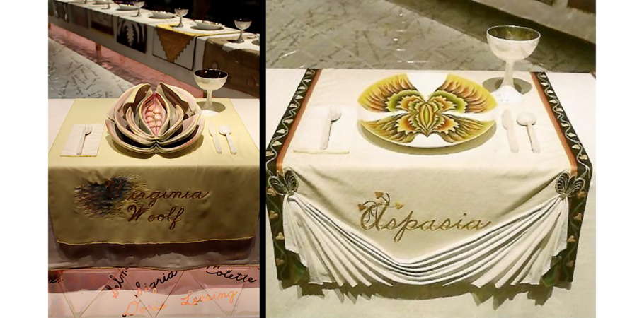 В 1979 году Джуди Чикаго завершала свою монументальную инсталляцию «Званый ужин». Скандал вызвали керамические тарелки — их форма, напоминающая стилизованные вульвы, буквально материализовала фукианскую идею о «гиперсексуализации» женского тела.