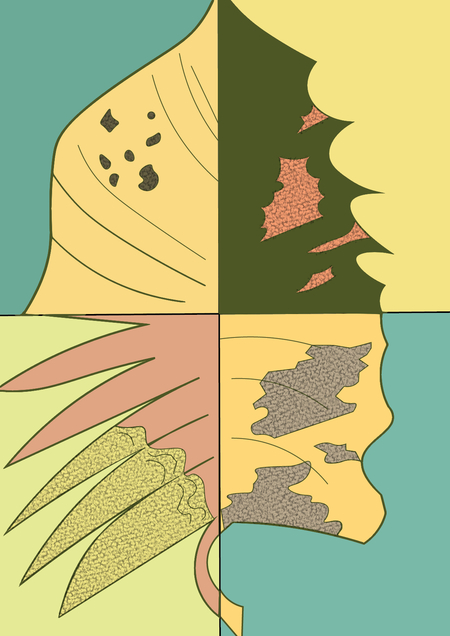 Растения со временем умирают по-разному, например, на деревьях вырастают грибы, а на листьях появляются пятна. Как ни странно, люди думают, что растения просто становятся более красочными или меняют форму, но на самом деле все они движутся к смерти. В этой серии плакатов я выражаю мысль о том, что даже увядающая или разлагающаяся природа может быть красивой и выделяться на фоне остальных.