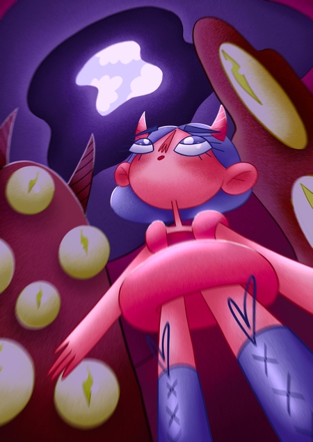 В аду Дьяволиса не чувствует себя на своем месте и мечтает о том, как было бы чертовски весело стать ангелом.
