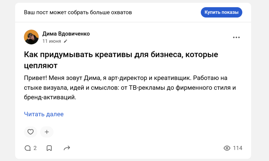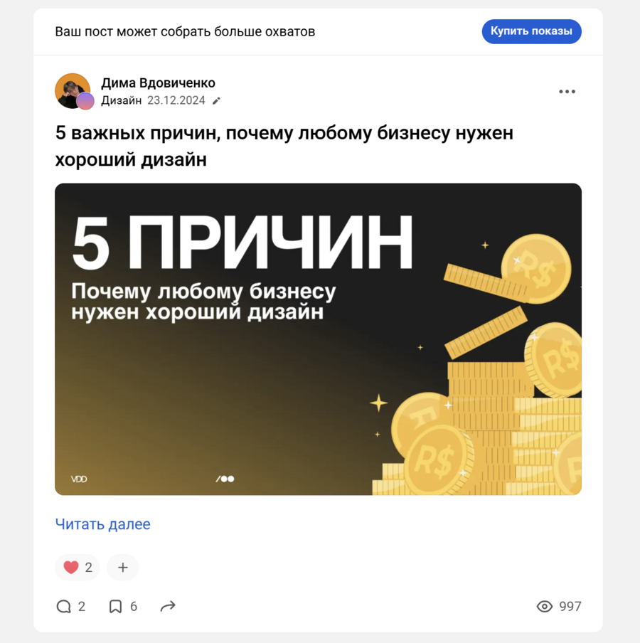 В рамках курса, я использовал 2 платформы для продвижения: - VC.RU (3 поста) - YouTube (1 шортс)