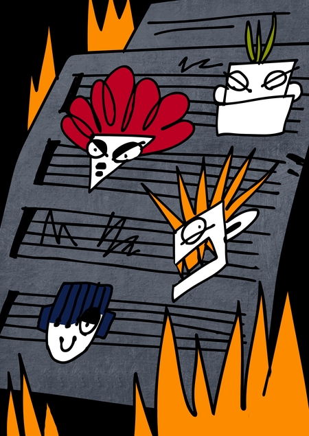 Квартет эксцентричных исполнителей опаздывает на концерт. В отчаянии музыканты устремляются в метро и угоняют поезд. Успеют ли они сыграть?