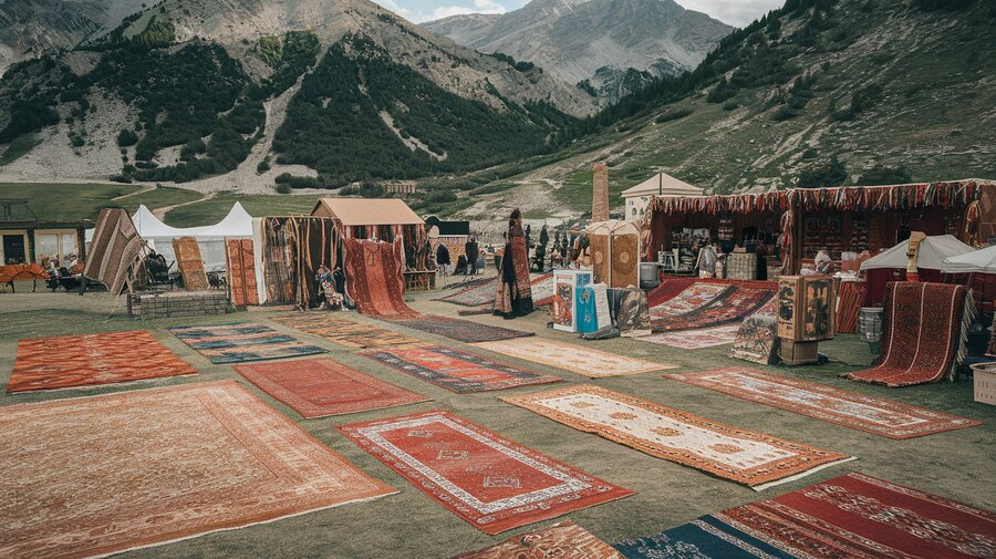 prompt: carpet festival taking place in the mountains outdoors ethnic