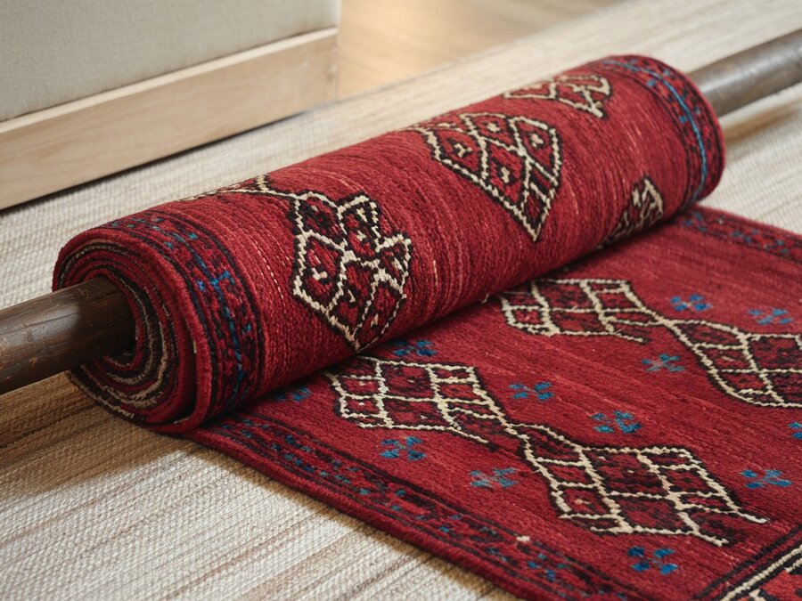prompt: create a poster for an ethnic festival of carpets from around the world with abstract patterns with text about carpets