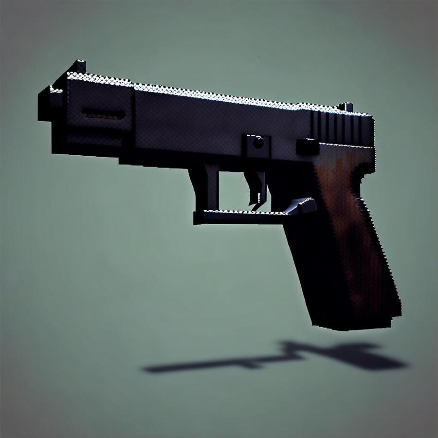 Промт - Playstation 1 style, Silent Hill 1 style, retro 3D very low polygonality, realistic but pixelated textures reflecting the gaming limitations of the era. Horror game item concept. A simple black pistol inspired by the glock-19. Game icon
