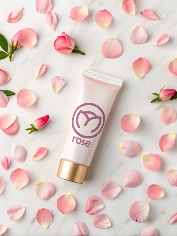 Prompt: A cream tube lying on a table surrounded by flowers and petals. The scene is soft and elegant, with delicate floral elements enhancing the beauty of the product. The cream tube is designed with a minimalist, luxurious aesthetic, complementing the natural and refreshing atmosphere created by the flowers and petals.
