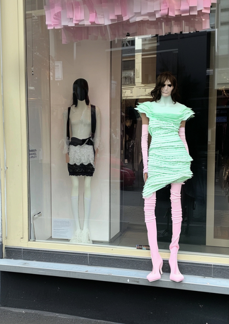 Цель витрины передать атмосферу творческого коллектива. Поскольку бренд молодой и озорной, есть возможность обыграть дешевые материалы и неуклюжее положение вещей. В генерациях присутствуют элементы 80-х, отсылки к мемам и непосредственно самому фильму-вдохновению. Сюжеты витрин сперва могут показаться примитивными и очевидными, но это осознанный ход передачи рекламных витрин США 80-х годов. В серии витрин три витрины с аксессуарами, две с одеждой и одна имиджевая. Такое распределение сделано на основе коммерческой выгоды и яркости образов.