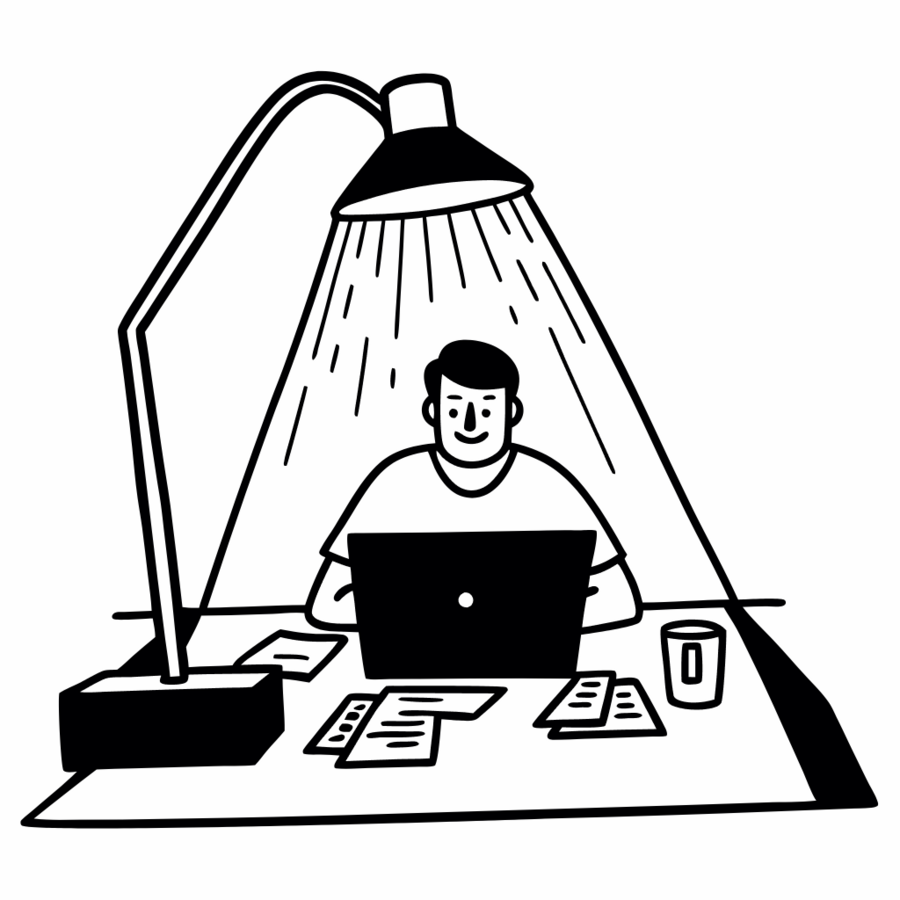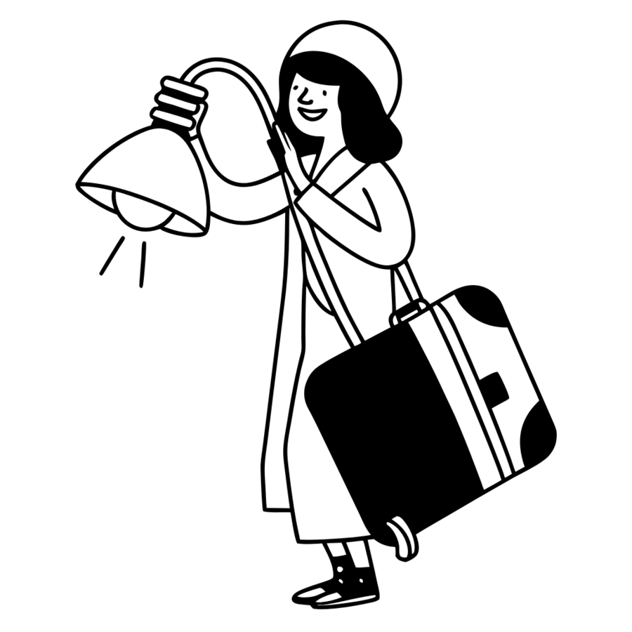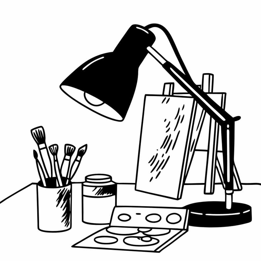 Recraft prompt: 1. Man who is working at home using table lamp. 2. Lamp which is making your working on paintings more comfortable 3. Woman who is happy to take her lamp together