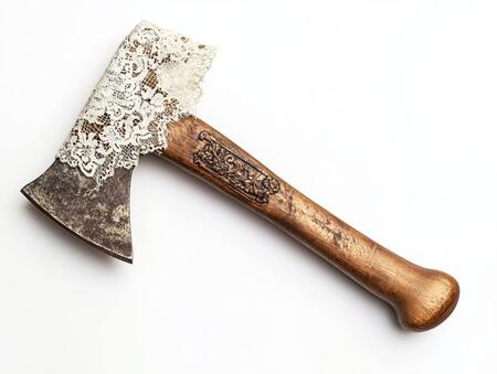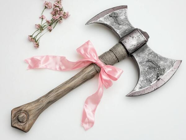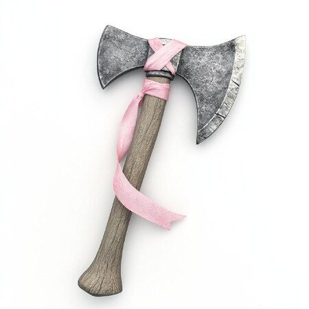 Ресурс — https://www.midjourney.com/ Promts: - axe with pink bows on a white background - axe with lace on a white background - an axe with ruffles on a white background