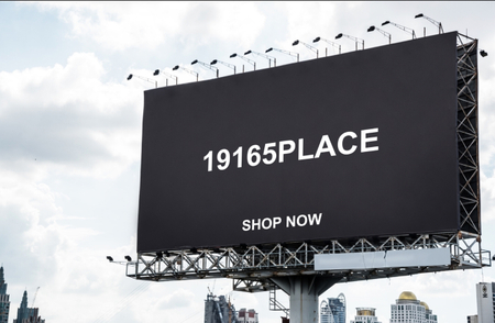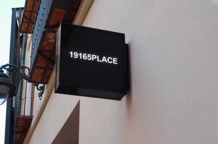 exterior of the '19165PLACE' retail space as seen from a bustling street in New York City. the building has an edgy, industrial look with dark tones, a matte black facade, and minimalist signage featuring the bold, graffiti-inspired logo. large windows reveal glimpses of the mysterious interior, with dim, atmospheric lighting adding a sense of exclusivity. the entrance is understated yet stylish, with hints of metal accents and exposed brickwork, blending urban sophistication with a rebellious, underground vibe. surrounding storefronts reflect New York’s dynamic, gritty energy, making '19165PLACE' feel like a hidden gem in the heart of the city