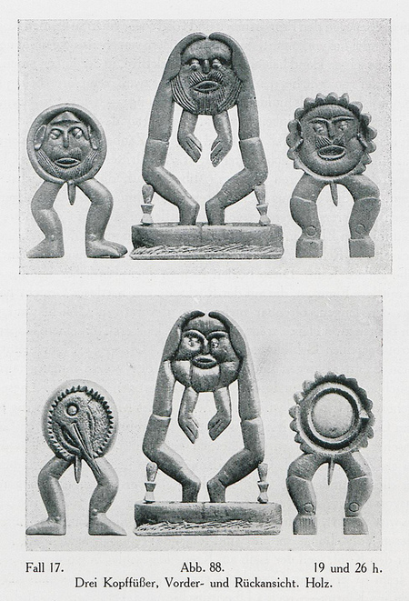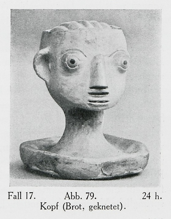 слева — Карл Брендель, «Голова»; справа — Карл Брендель, «Три статуэтки» (вид спереди и сзади), иллюстрации из книги Ханса Принцхорна «Художественное творчество душевнобольных», 1922