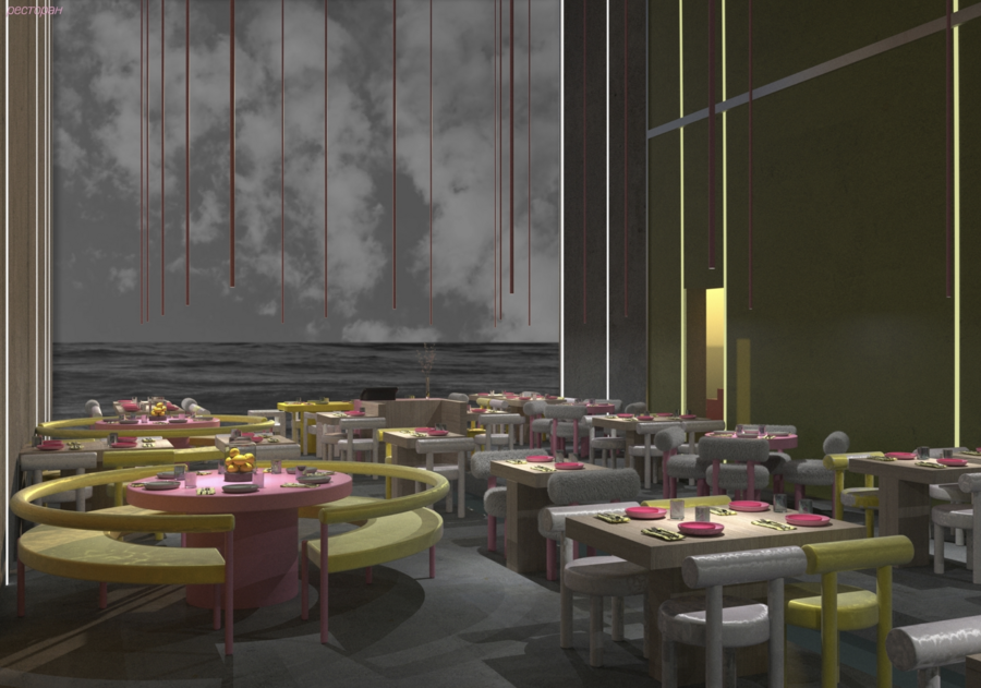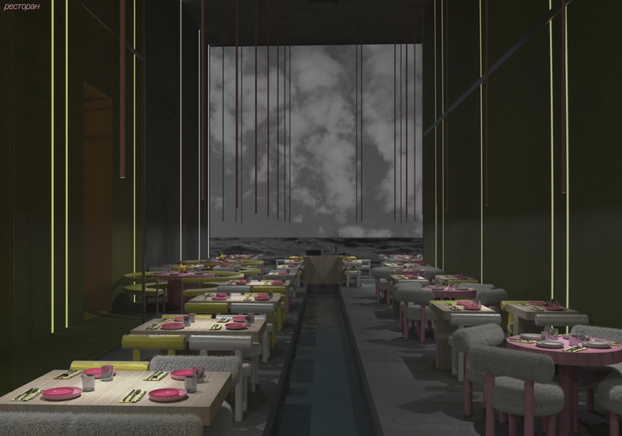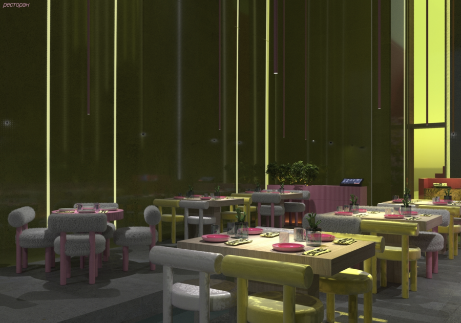 Дизайн — проект ресторана «ТЕТРИС» высокой мексиканской кухни был создан по мотивам мексиканского художника и архитектора Луи Барагана. Произошло переосмысление интерьеров проекта с помощью нейросетей.