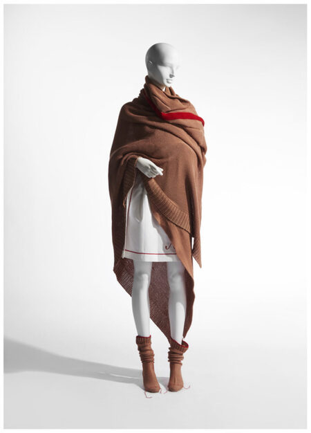 Некоторые модели были в чем-то наподобие смирительных рубашек, а у других были перевязаны глаза. В целом взгляд и вид моделей был как будто бы уставшим и апатичным, а походка — медленной. В качестве обуви выступали носки для сна.