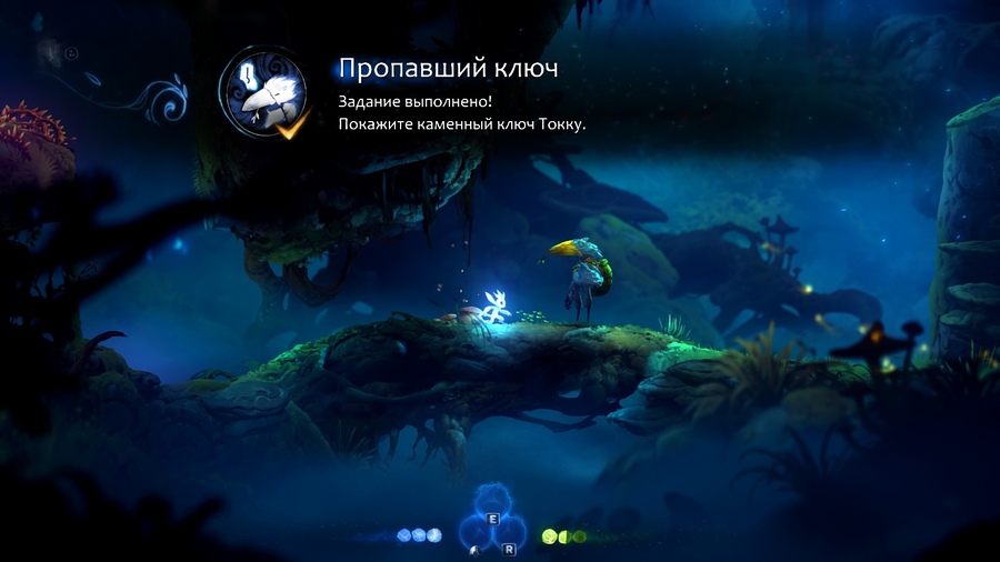 Всплывающее окно, оповещающее о взятии задания, о продвижении по заданию, об окончании задания. «Ori and the Will of the Wisps»