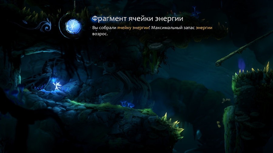 Всплывающая подсказка, сообщающая о нахождении ячейки энергии. «Ori and The Blind Forest»