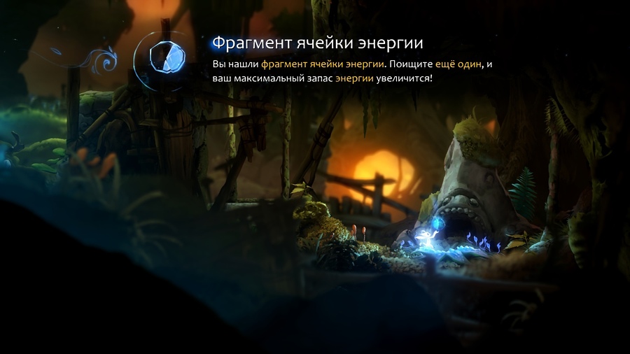 Всплывающая подсказка, сообщающая о сборе фрагмента ячейки энергии. «Ori and the Will of the Wisps»