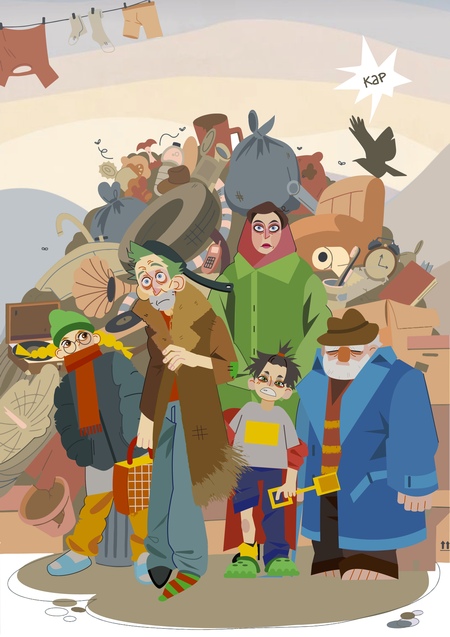 Настольная игра по мотивам стихотворения «Вот какой рассеянный». Семья Рассеянных — бездомные-барахольщики, которые тусуются в свободное время на свалке и ищут интересные вещички в свою коллекцию. Помогите найти как можно больше интересных им вещей и дойдите до финиша первым.