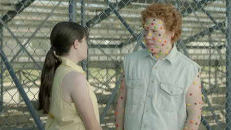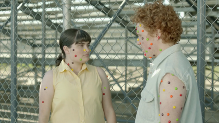 Фрагменты ролика «Skittles-pox» (Скиттлс-трянка), в которых героиня подцепляет болезнь парня.
