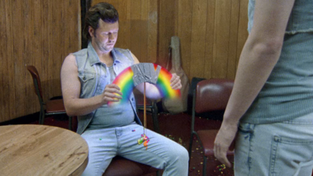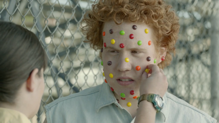 Несмотря на отвратительный характер сцены, герои продолжают спокойно есть Скиттлс, продолжая делать вид для зрителя, что ничего необычного не происходит.