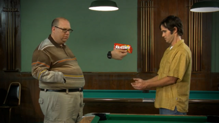Со временем кампания начала предпринимать попытки более смелого и идейного маркетинга, создавая причудливые сюжеты, в которых проявлялись задатки той рекламы, которой бренд известен сейчас повсеместно. Постепенно в роликах стали появляться странные, местами даже сюрреалистичные образы: люди, притягивающие скиттлс силой мысли, овцы с лицами людей, разговаривающие о вкусе конфет, или сцены, в которых Skittles буквально вмешиваются в физику выдуманного мира ролика. Однако, как мне кажется, уверенная связь между Skittles и «вкусом радуги» в общественном сознании начала формироваться не сразу, а ближе к середине нулевых, когда компания решилась окончательно отказаться от прямолинейной подачи.