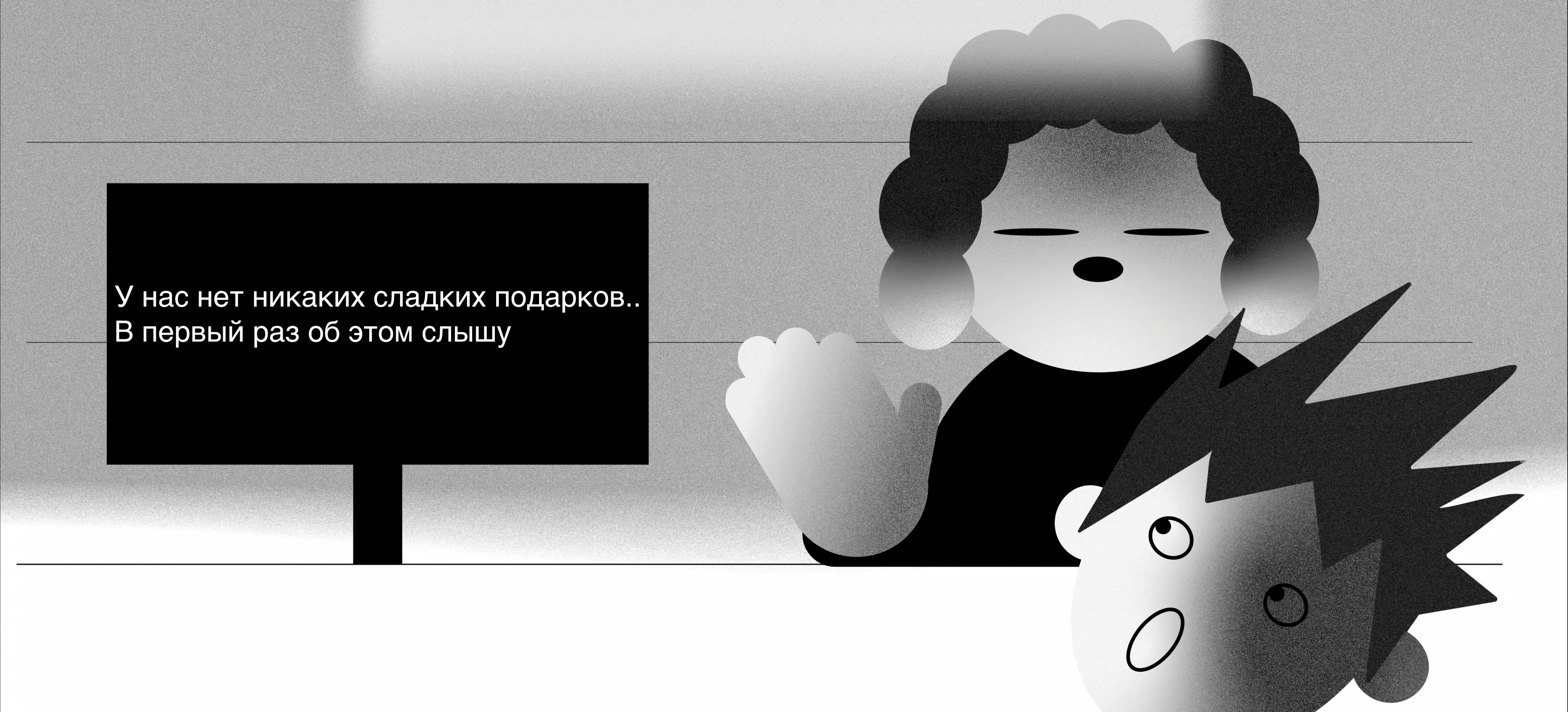 В линейке мерча представлены Новогодние атрибуты, стилистика которых соответствует центральной идее книге — отмены Нового года, поэтому мерч выполнен в черно-белых цветах в минимализме. Мерч состоит из шара на ёлку, свитера и открытки.