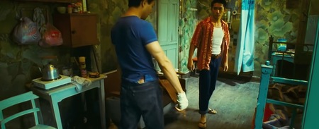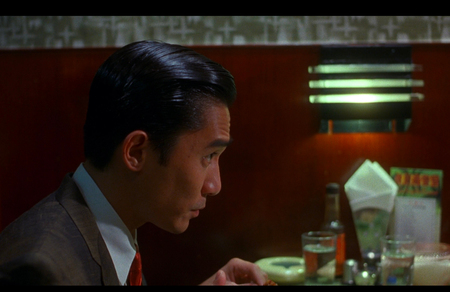 Иногда меланхоличный Вонг Кар-Вай помещает одного из героев в край кадра, показывая его разговор «со стеной». Такой прием намекает нам на «тотальное» непонимание между персонажами, герой коммуницирует с другим, но он один, его не слышат и не хотят понимать.