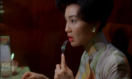 Еда для Вонга Кар-Вая — выражение чувств, а пространства, в которых ее подают — центр событий. В фильме «Любовное настроение» Су и Чоу часто обедают вместе, там они впервые начинают делиться друг с другом догадками об изменах, еда как будто заменяет интимную близость, ведь такой личный процесс разделишь далеко не с каждым.