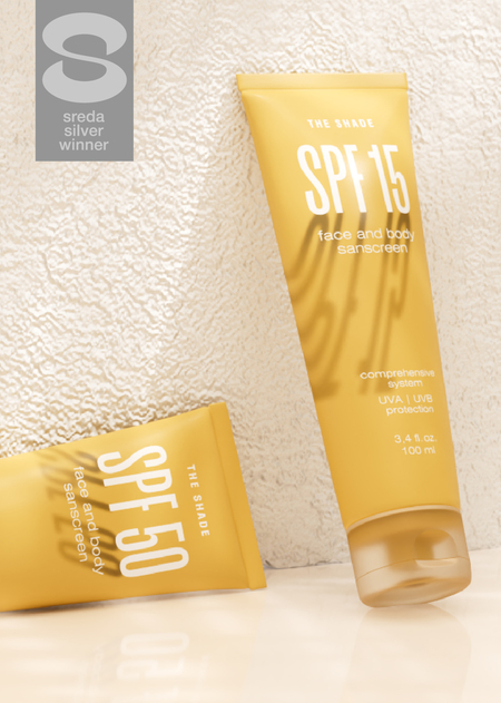 SPF крем The Shade создан для защиты кожи от UVA и UVB излучений. В линейке три SKU, отличающиеся степенью блокировки солнечных лучей. Задачей было нагляднее показать силу каждого средства — чем выше защиту от солнца оно дает, тем меньше становится тень, падающая от букв, ведь когда солнце в зените, тень становится совсем маленькой.