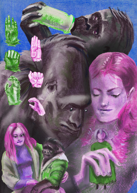 Я всю жизнь замечала, что люди почему-то очень не любят обезьян. Не потому ли, что они слишком на нас похожи, но позволяют себе то, от чего все человечество бежит? Так уж плохи эти обезьяны? Отвергая их, не теряем мы ли часть себя? «Обезьяний нонфик» — это история о принятии Человеком своей животной природы, символом которой, является, конечно, Обезьяна. Именно поэтому в качестве материала я выбрала пастель: она позволяет обезьяниться, потому что похожа на детские мелки. Тема, которая объединяется все плакаты — важные точки в истории взаимодействия обезьян и людей.