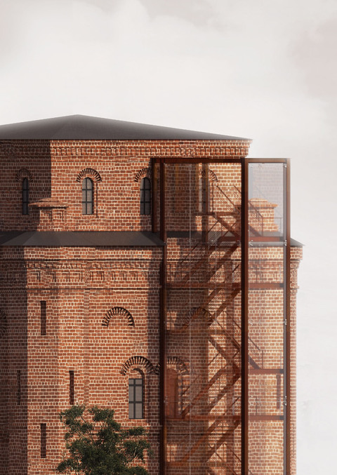 This project is a plan of the renovation of a water tower building near Leningradsky railway station. Currently the building, along with the rest of the buildings on the territory, is rented and the appearance of the tower is very different from the original one. As part of the project, it is proposed to restore the original appearance of the architectural monument and to turn this place into an art space, making it the cultural dominant of the area.
