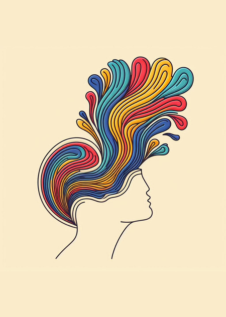 Для создания обложки была использована нейросеть Bing Image Creator, промпт: a vector minimalistic drawing of a person’s head being open at the top with colorful waves coming out of it
