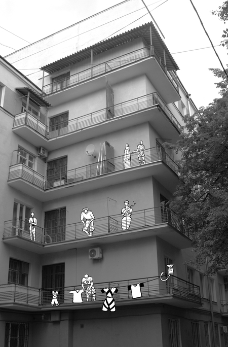 Проект о несуществующих жителях несуществующего идеального будущего коммунизма. Безликие, носящие прозодежду, идеальные рабочие.