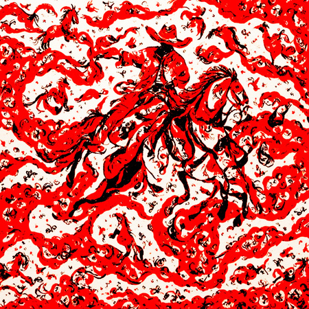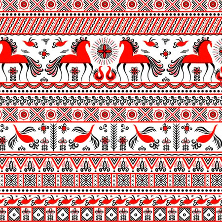 В итоге нейросеть научилась делать белый фон картинкам, использовать ограниченную палитру, повторять узоры, вписывать в картинку абстрактные изображения птиц и коней. Узоры выглядят гармонично и не смешиваются с основным изображением. Силуэты чёткие, не сливаются с фоном и не состоят из волнистых линий, как это было в первой итерации.