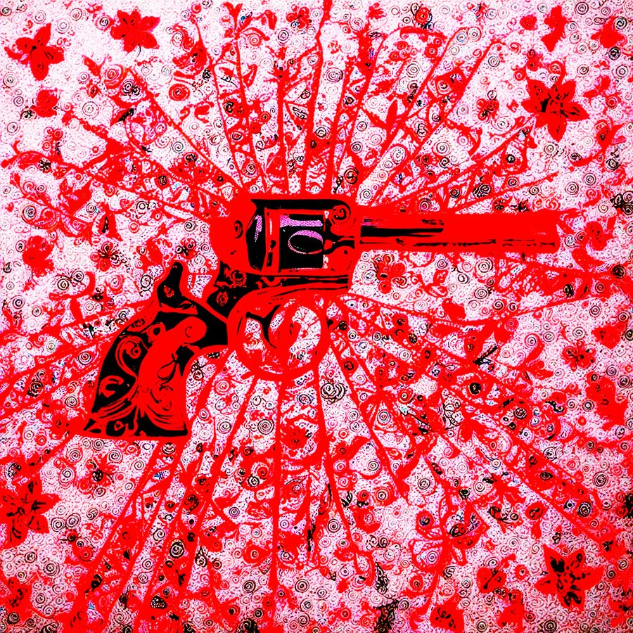 Я нагенерировала на новой итерации модели картинки по тем же самым промптам и сгенерировала револьвер по новому промпту: «art in MEZEN style, revolver aiming at sun».