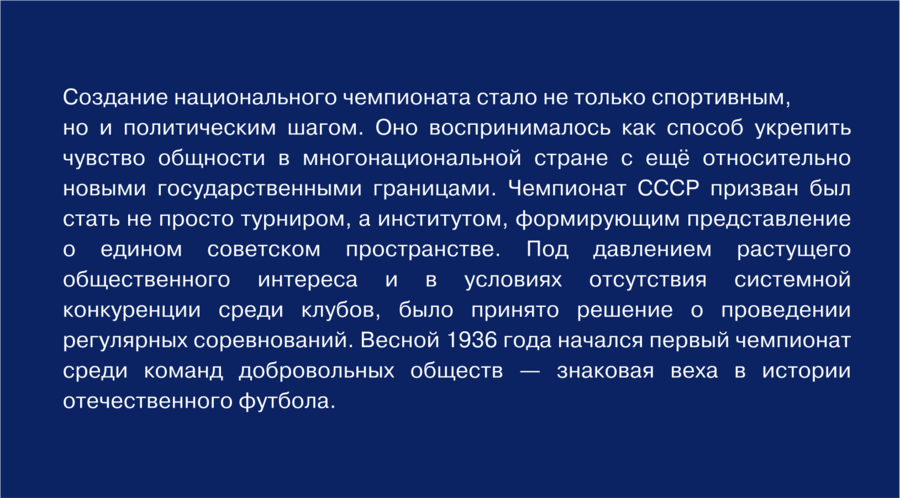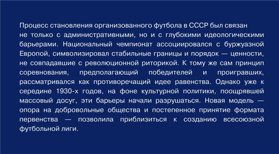 «Разминка» посвящена детству Льва Яшина. Через его личную биографию мы погружаемся в атмосферу довоенной Москвы и узнаём, как в 1930-е годы формировались основы советского футбола — от уличных «диких» команд до первых добровольных спортивных обществ. Именно в это время спорт становится частью государственного проекта: доступным, массовым и управляемым.
