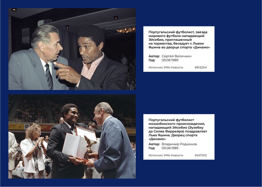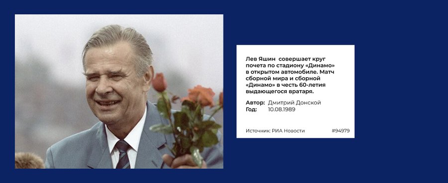 Медиаархив РИА Новости: поиск по запросу «Лев Яшин» // РИА МедиаБанк. — URL: https://riamediabank.ru/search/?query=Льва+Яшина& selection=media& sort=date& order=desc& page=7 (дата обращения: 16.05.2025).
