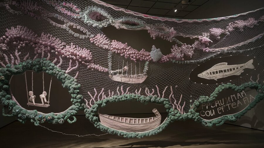 В основе арт-обекта — образ зависших рыболовных сетей, в которых застряли обрывки слов и всего того неуловимого, нежного и ранящего, что есть в моменты уязвимости и залечивания ран в нашей жизни.