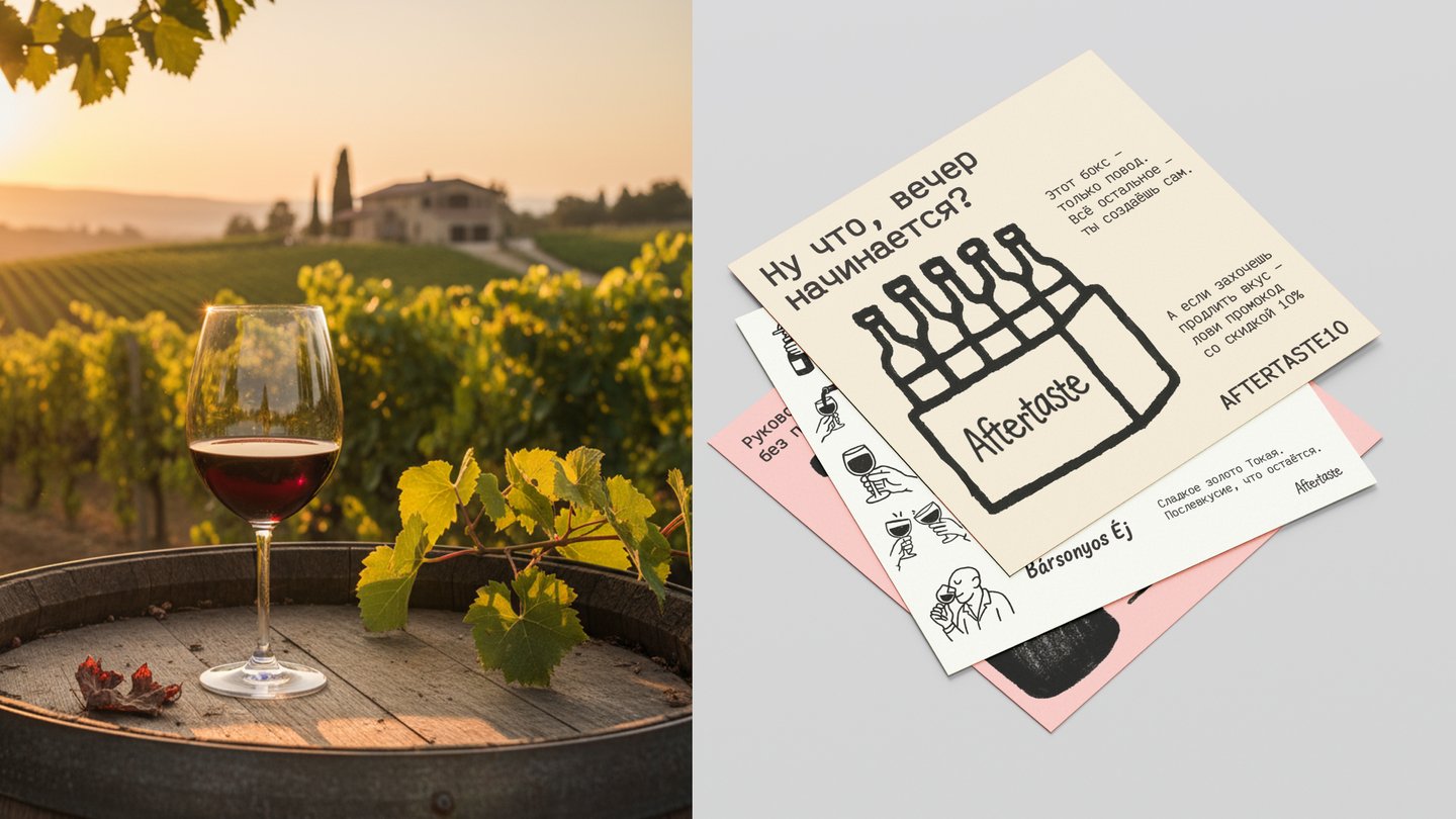 Aftertaste — это проект о вине и моментах, которые не спешат. Он объединяет коллекции винных боксов, созданных, чтобы дарить атмосферу, а не просто вкус. Каждый бокс — как небольшое путешествие: в настроение вечера, в историю вина, в тишину после глотка.