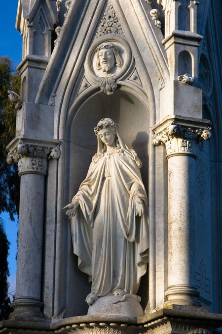 Слева направо: Статуя Девы Марии, скульптор неизвестен, Кладбище Святого Креста, США // статуя Девы Марии, Мария Скану, Санта-Тереза ди Галлура, Сардиния.