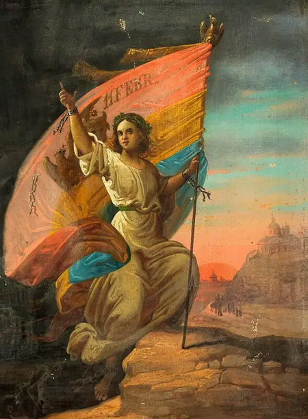 Слева направо: Тоидзе И.М., «Родина-мать зовет!», 1941 // Георге Таттареску, «Современная Румыния», 1866