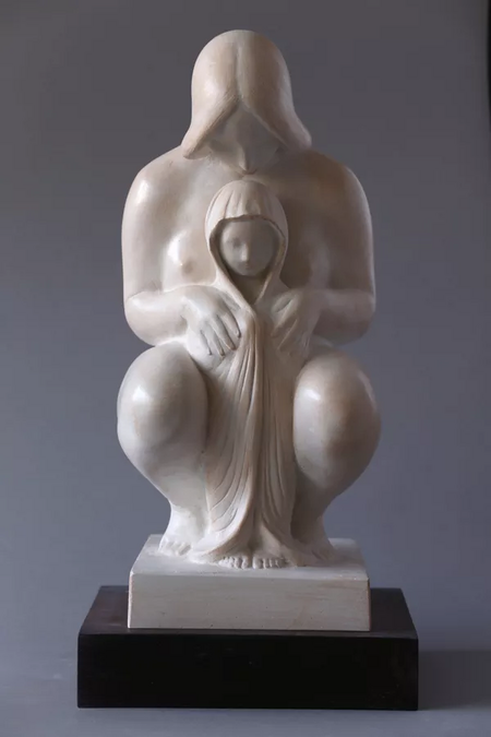 Биатрис Хоффман, скульптура «Мать и дитя», XXI в. // Женская фигура из мрамора, 4500–4000 до н. э.