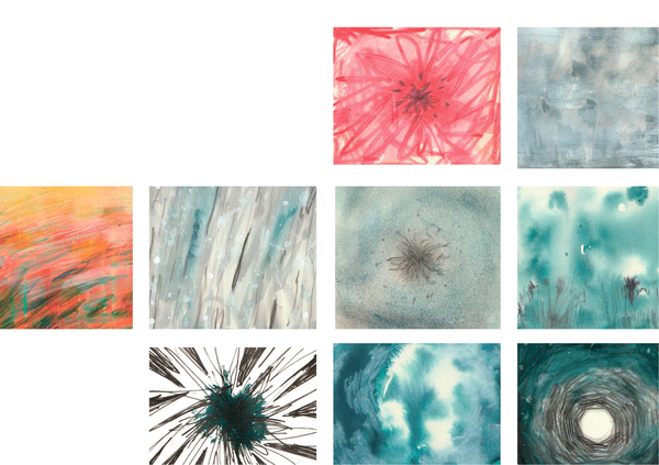 Сборник заданий по арт-практике из работ сделанных в течении первого модуля. Собранные работы — быстрые скетчи поз, динамики и передача эмоциональных состояний с помощью различных материалов, также в конце представлена коллекция мерча и 13 открыток.