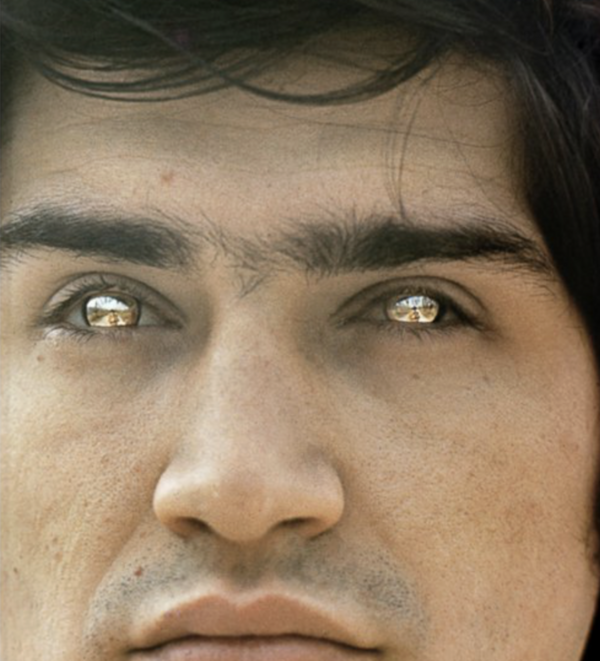Художник заменил свои глаза на зеркальные линзы. Взгляд перестаёт быть интимным, он отражает зрителя. Тело фиксирует не своё восприятие мира, а то, что мир оставляет на нём.